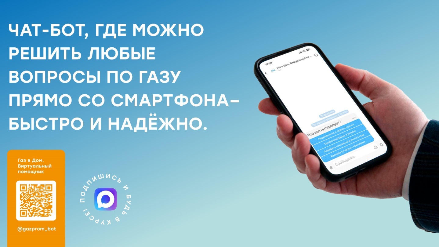 Чат-бот помогает потребителям получить информацию о подключении к сетям газоснабжения, оплате газа, техническом обслуживании и ремонте оборудования и других услугах